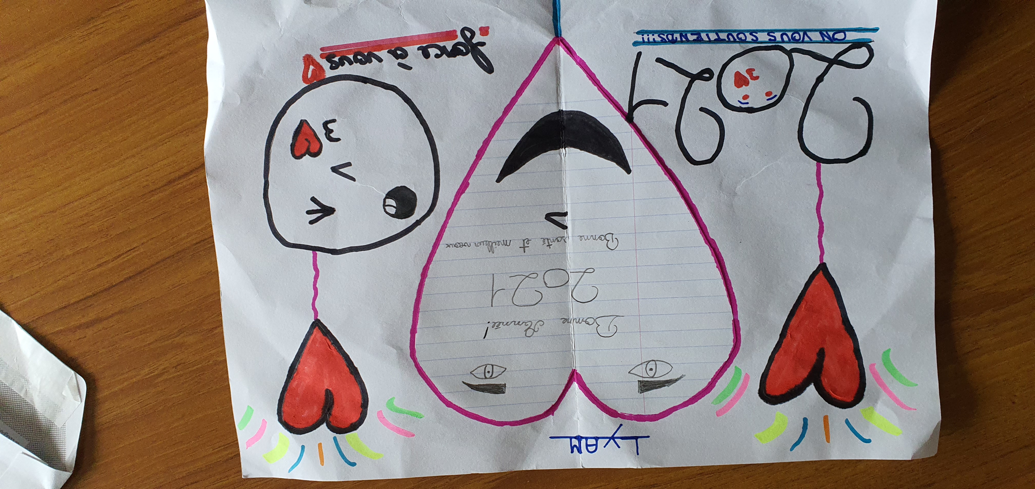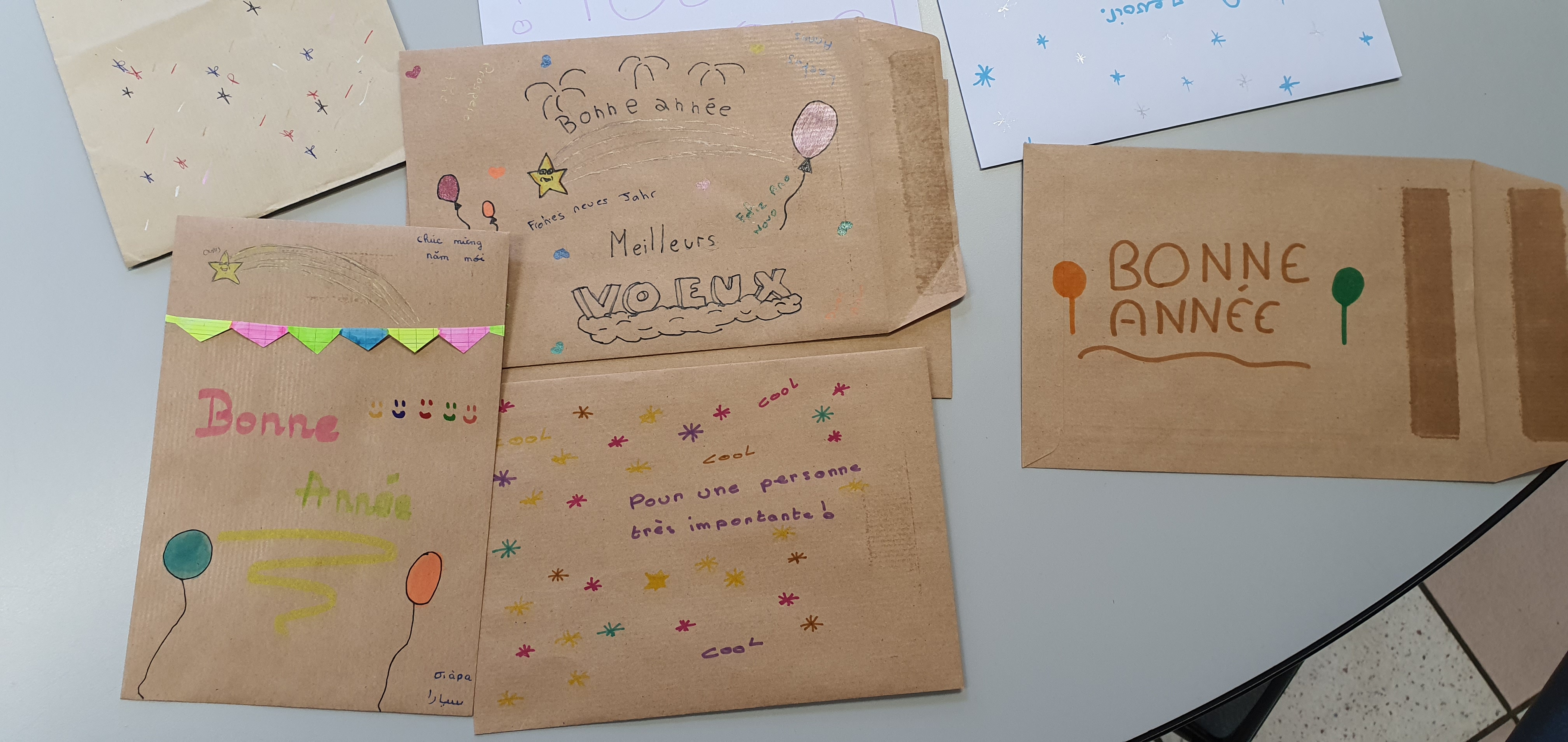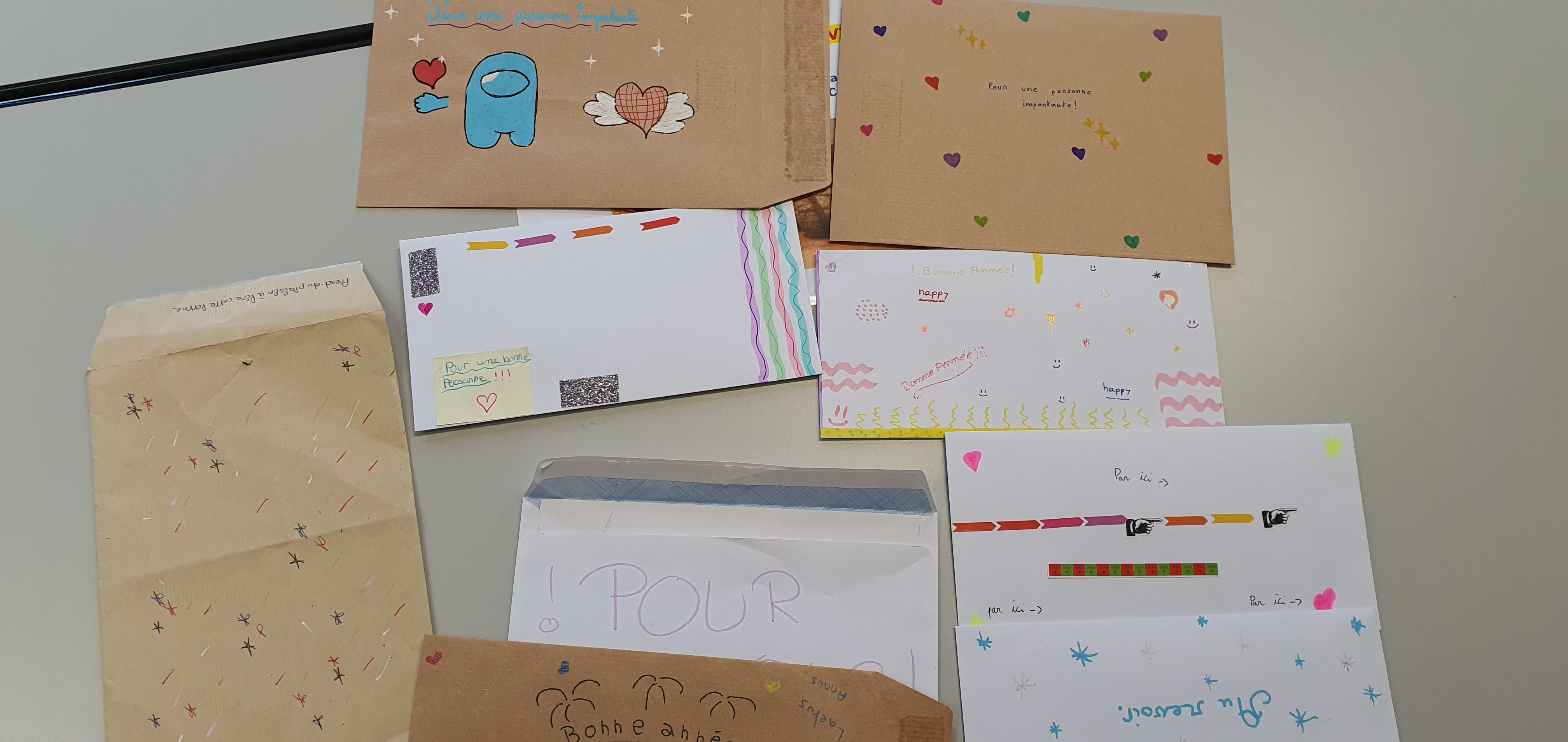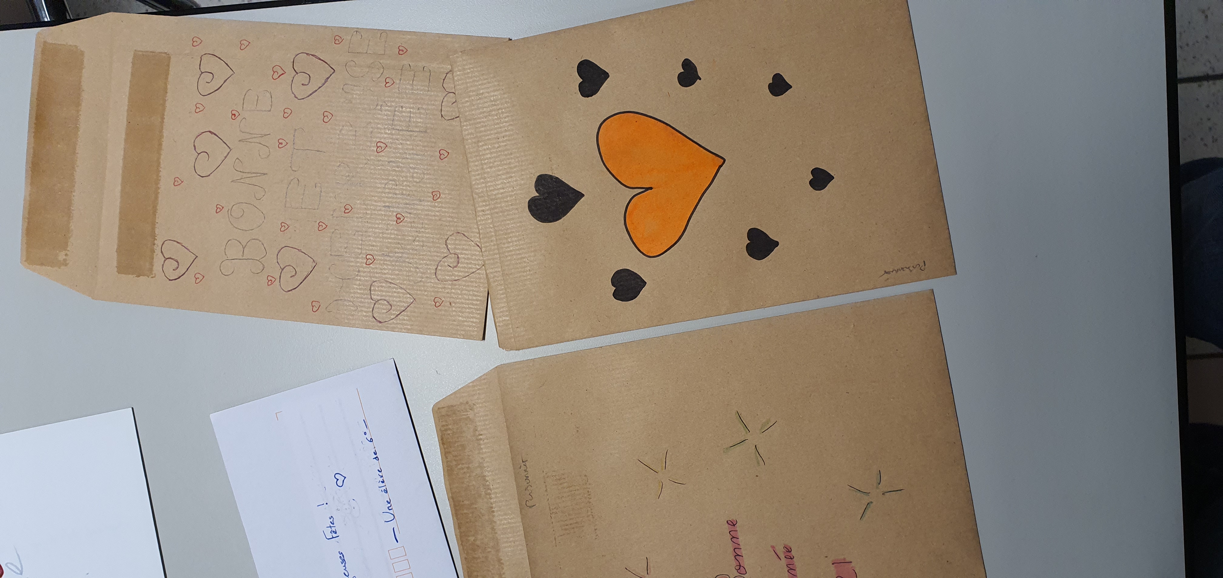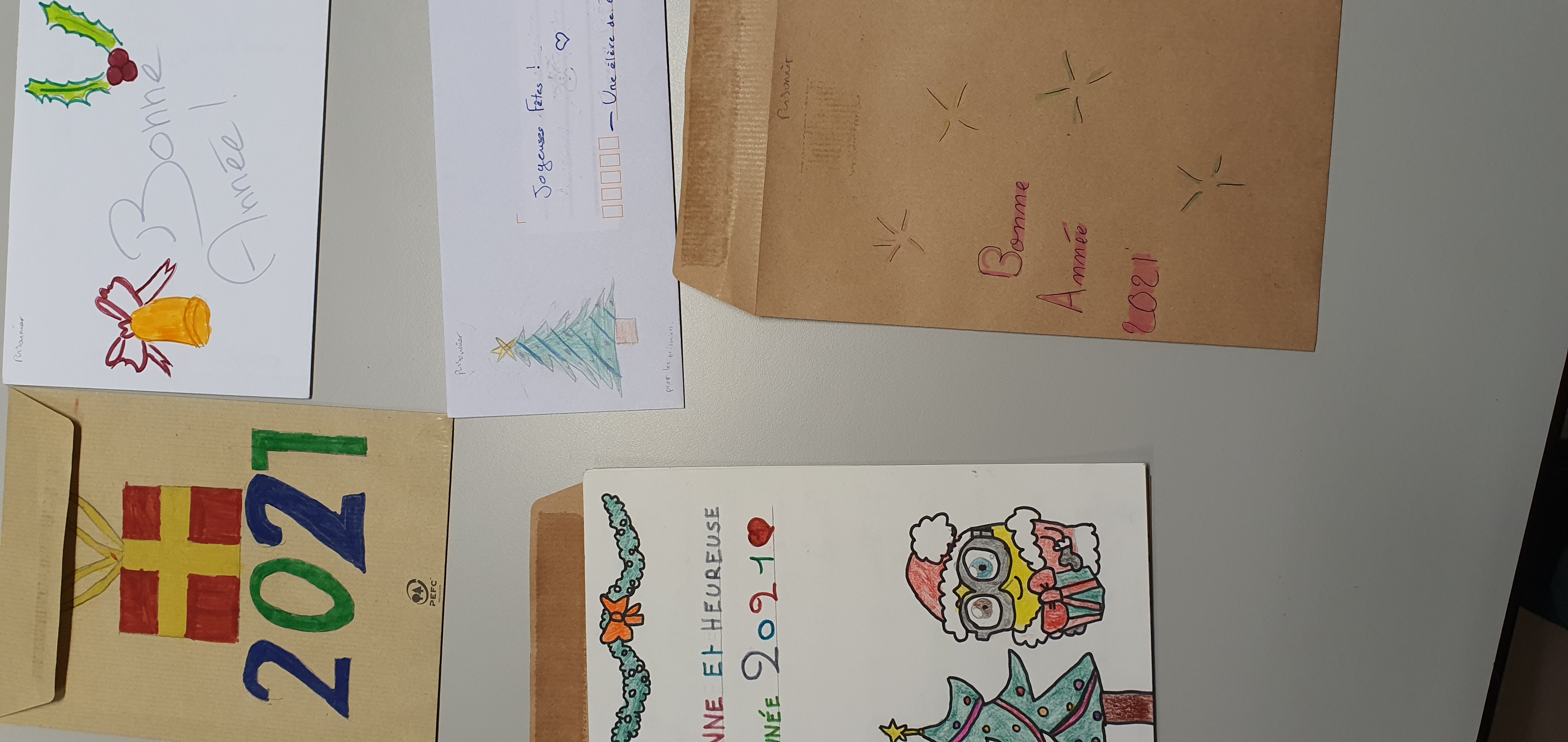 Au collège, nous avons un professeur visiteur de prison avec qui et par qui la pastorale a mis en place un projet modeste, mais porteur d’espérance : faire écrire des cartes de vœux pour des personnes incarcérées à la prison de Luyne par des élèves de 6è et de 5è qui le souhaitent. Après quelques années, les résultats sont visibles d’après les témoignages d’un certain nombre d’entre elles auprès d’aumôniers de prison. En quoi ce projet est-il porteur ? Tous les détenus qui entrent en prison seront un jour amenés à en sortir pour la plupart. Les élèves s’investissant dans la réalisation de ces cartes, prennent conscience et expliquent, après sensibilisation, qu’une personne incarcérée a le droit de se réinsérer, notamment par lune vie de famille, le logement, l’emploi, … et par des cartes de vœux. Etrange ?! Me direz-vous que des cartes de vœux puissent contribuer à une telle réinsertion, même si elle ne se fait pas du jour au lendemain ! Pourtant, les jeunes volontaires pensent que leurs cartes de vœux agissent comme un facteur constructif d’Amour aidant à la préparation et l’accompagnent de la réinsertion en société, dans la mesure où elles agissent comme des potions d’Espérance, animant ainsi des personnes en prison d’un fort sentiment de n’être pas oubliées et d’avoir avenir ayant du sens !