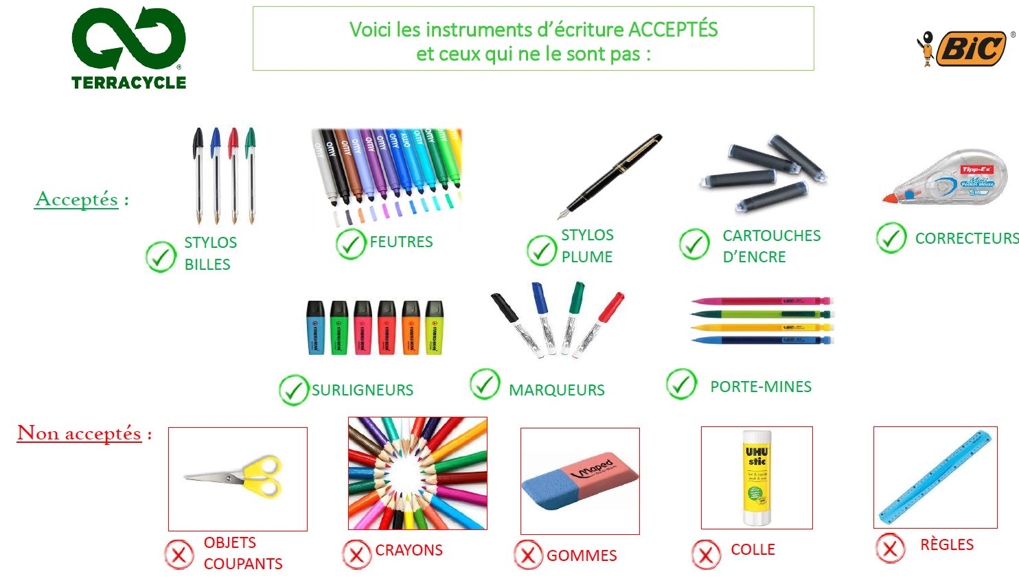 - le recyclage de matériel scolaire usagé par l’entreprise Terracycle, qui permet de verser une somme d’argent à l’association Enfance du Vietnam (qui scolarise les plus jeunes).