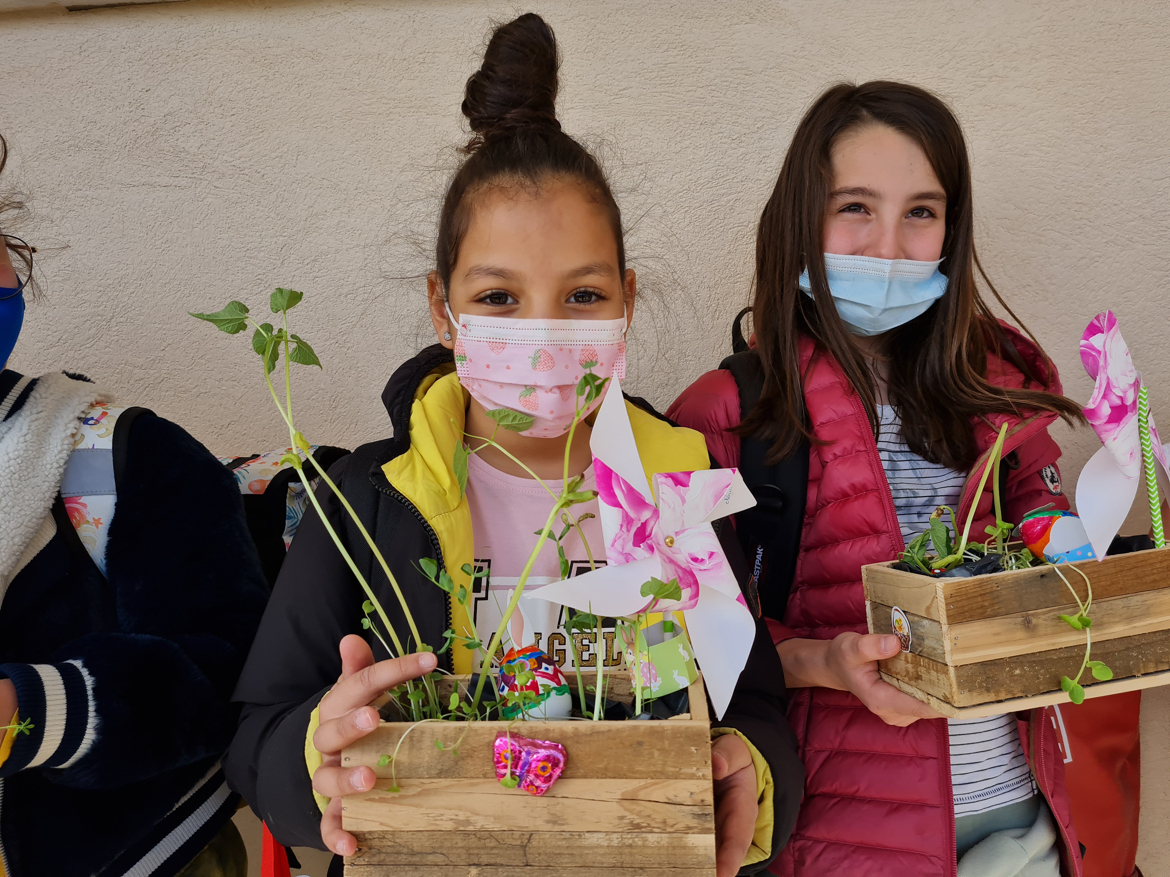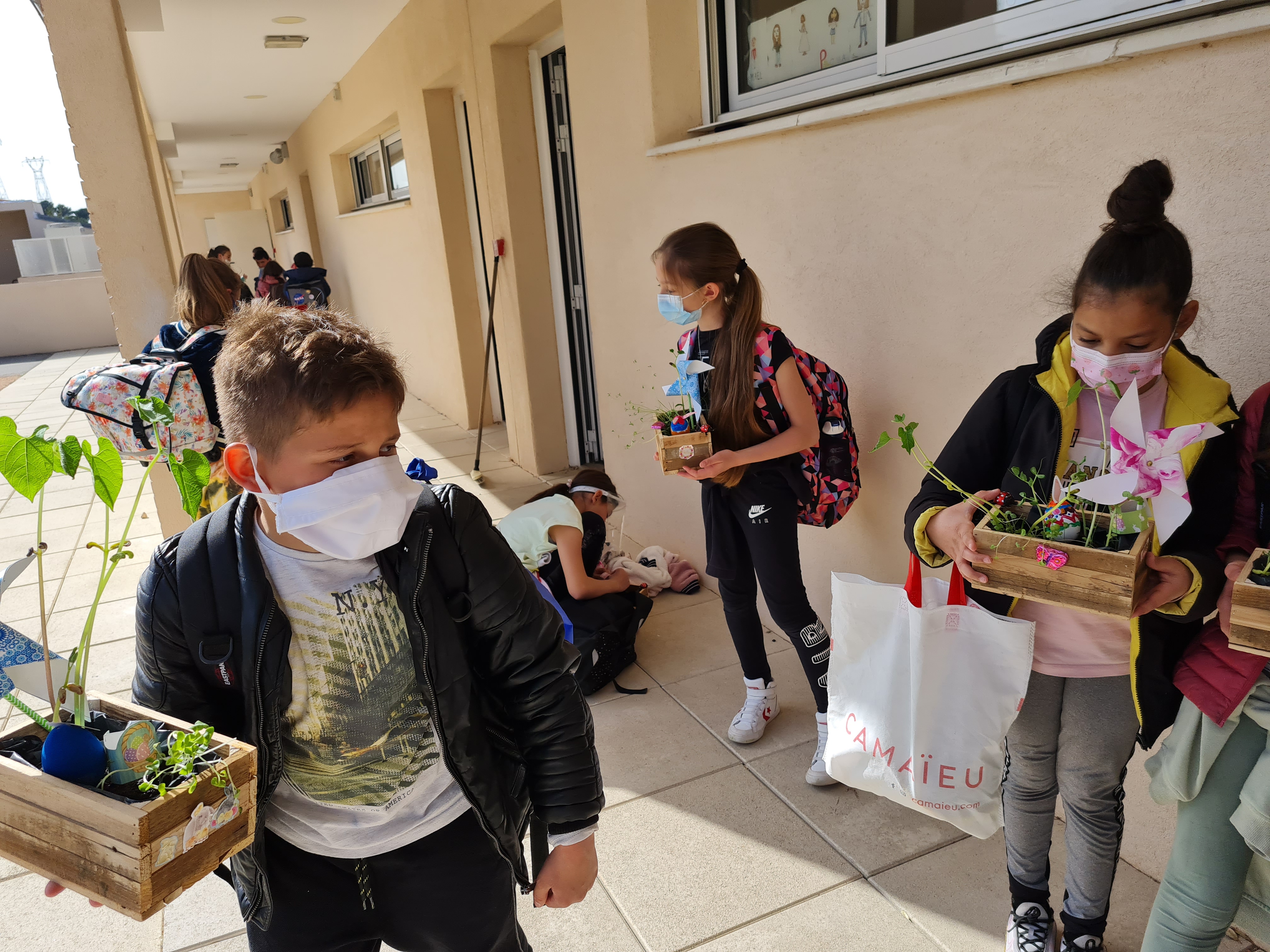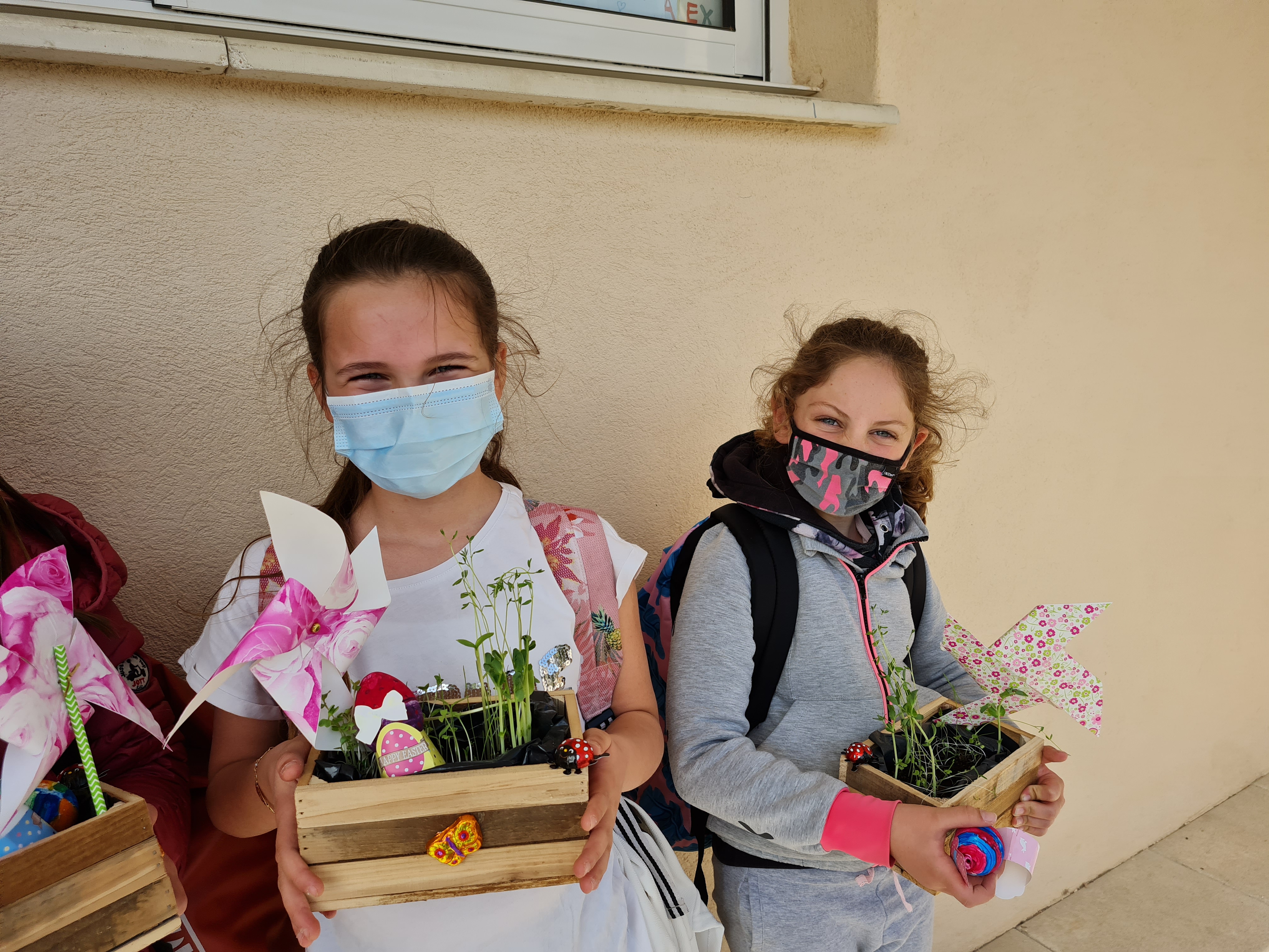 Les enfants partent avec leur petite jardinière pour le week-end de Pâques.