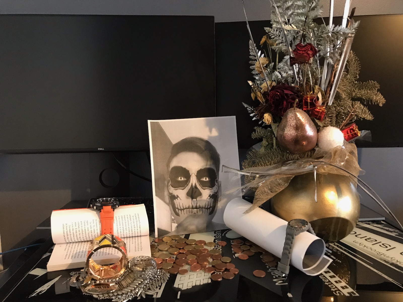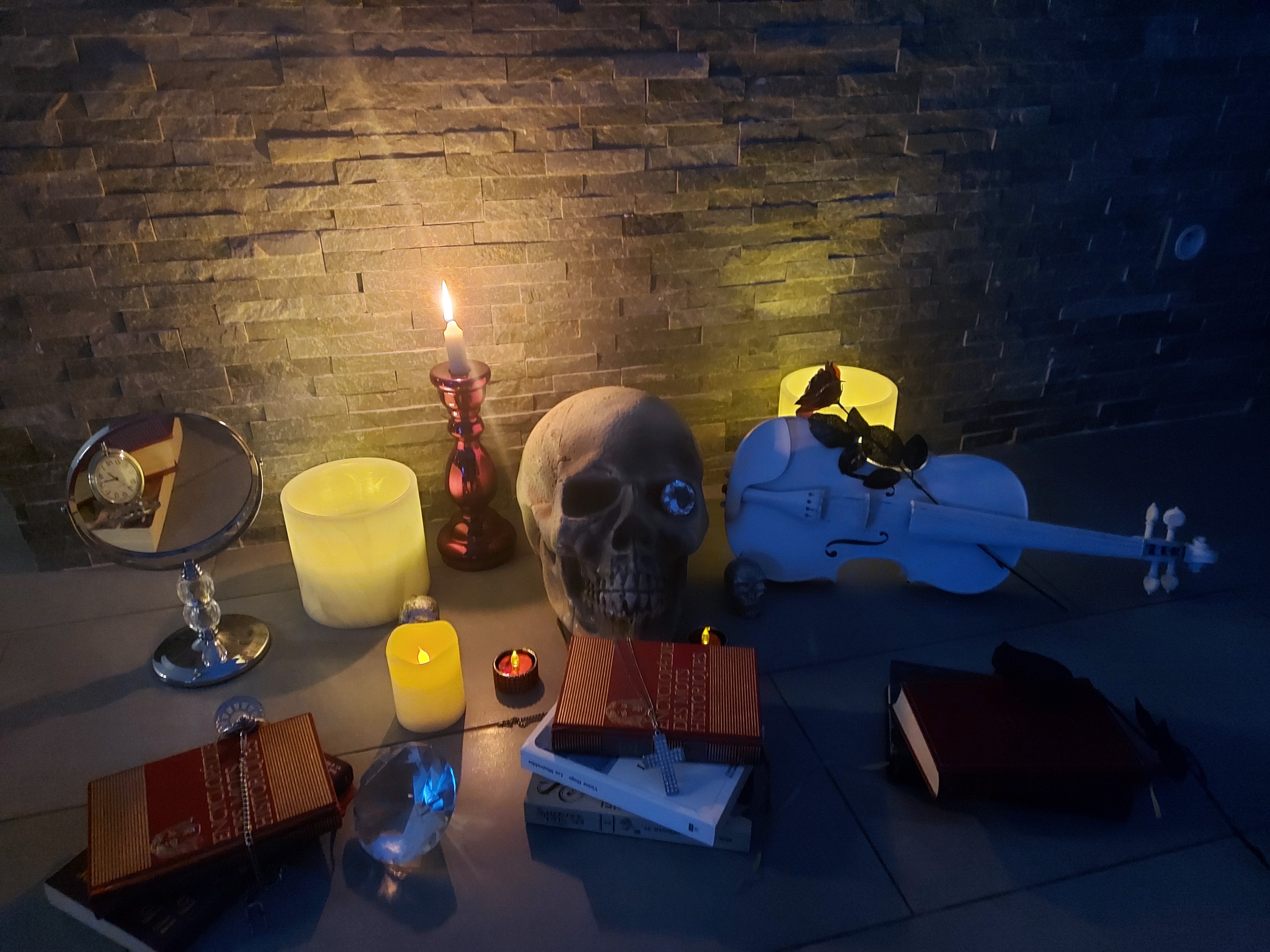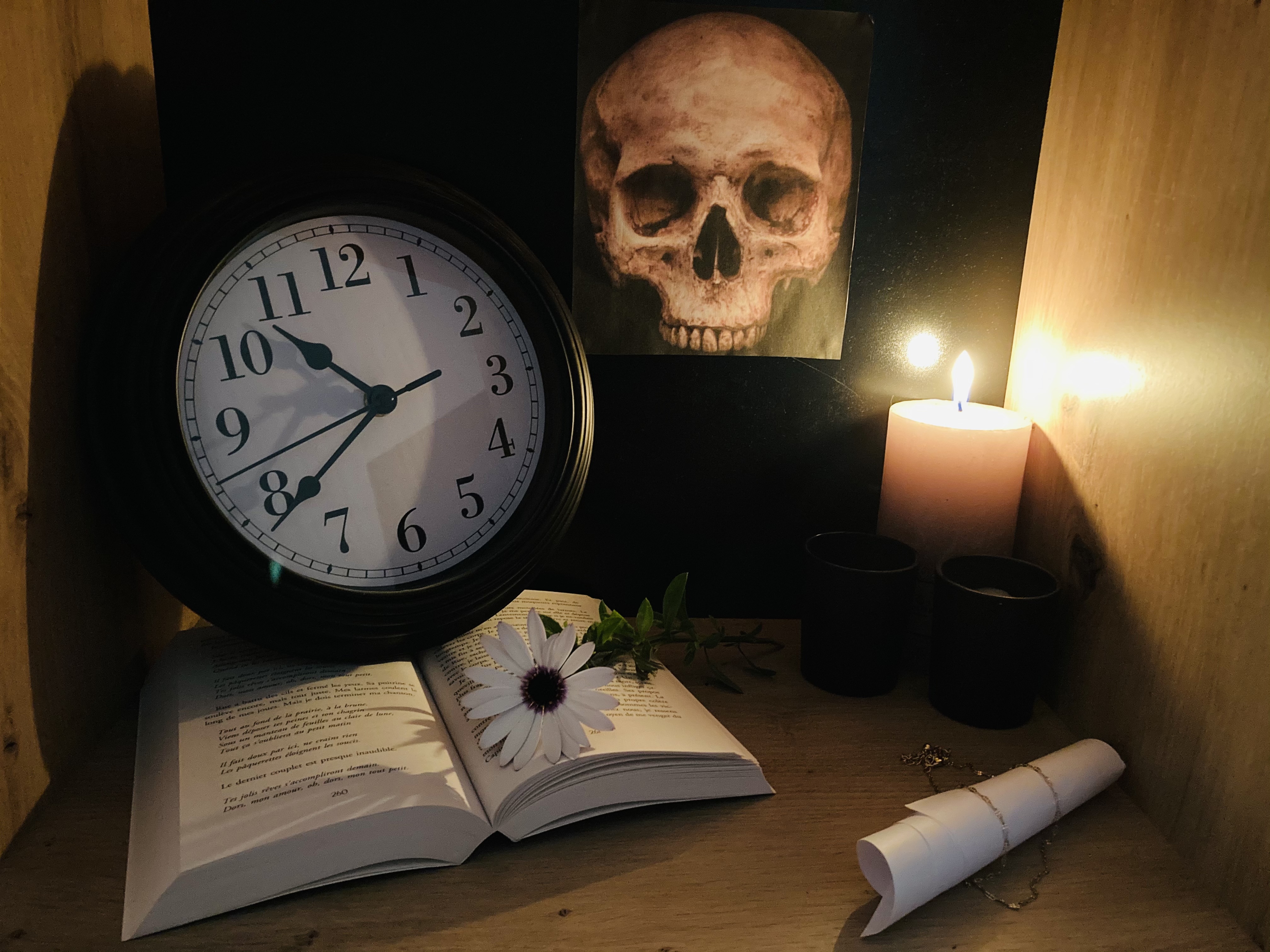 En peinture, la vanité est un genre pictural, évoquant différents éléments symbolisant la vie, la nature, l'activité et la mort. Ces tableaux ont généralement une grande valeur symbolique et philosophique. Ce type d'art a pour but de faire réfléchir le spectateur sur la futilité des plaisirs du monde face à la mort qui nous attend tous. Après avoir un dossier sur le style artistique des vanités, il s'agissait d'en créer une. Voici quelques réalisations !