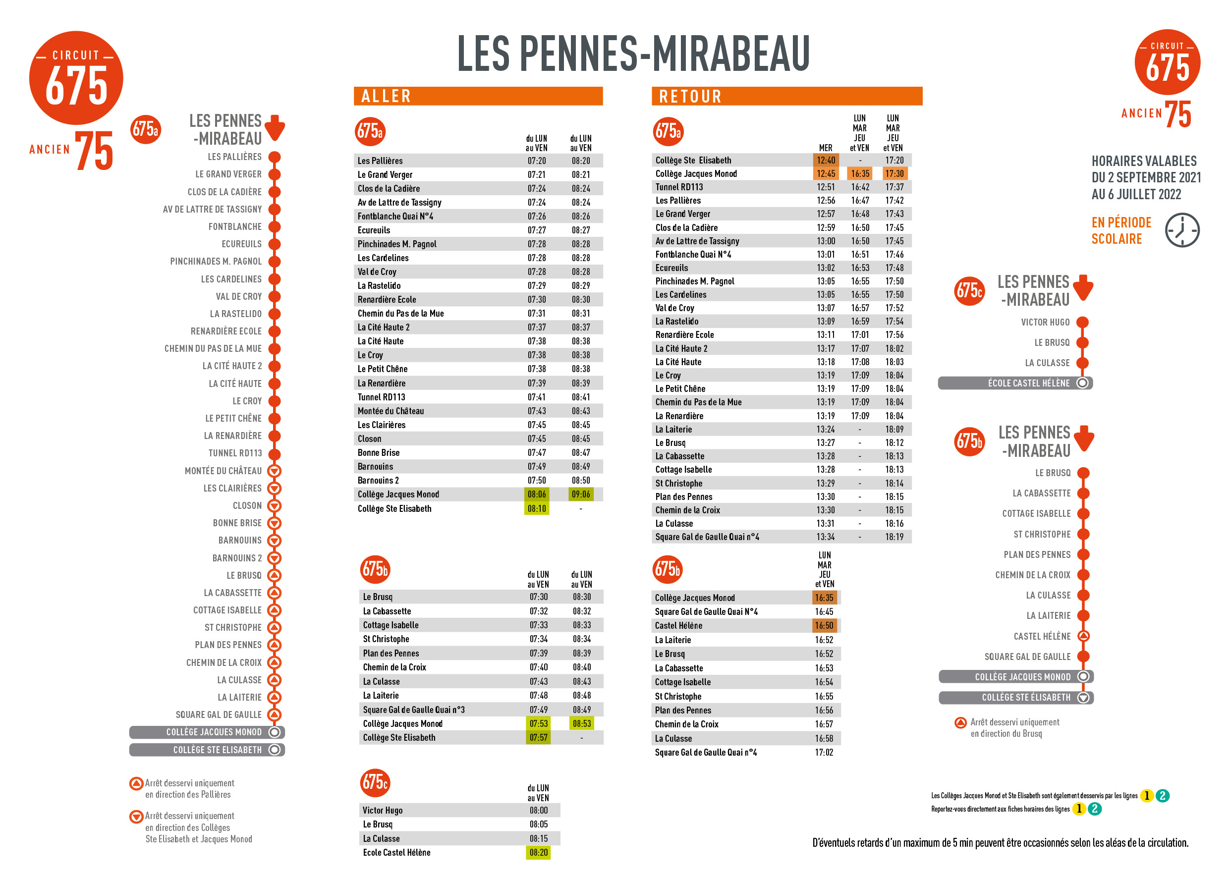 Voici la suite des circuits scolaires qui desservent le collège pour la rentrée 2021. Circuit 95 renommé : circuit 695 – transport scolaire du Collège Ste Elisabeth. Circuits 675a et 675b : Circuits de la Métropole Mobilité – Bus de l’Etang qui passent devant le collège Ste Elisabeth.
